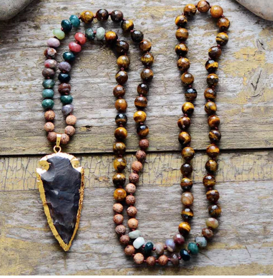 MALA SCUDO PROTETTIVO IN AGATA NERA E OCCHIO DI TIGRE