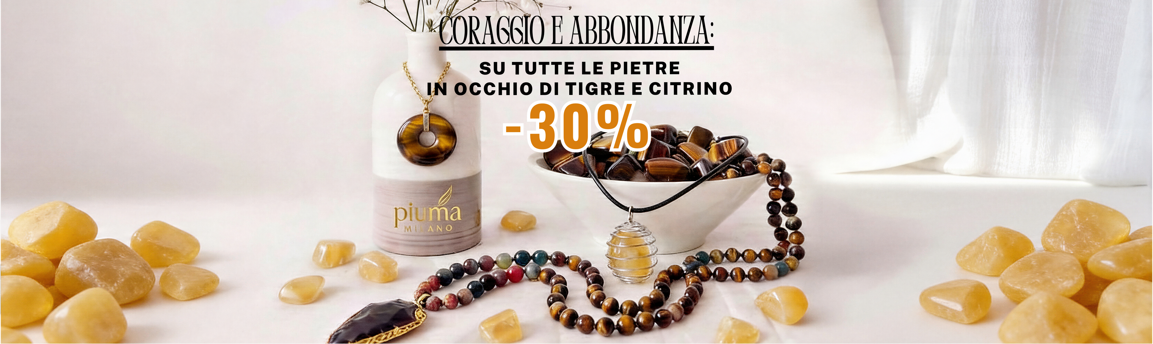 Sconto 30% direttamente al carrello, su tutti i gioielli occhio di tigre e citrino. Promo valida fino a domenica 04/05