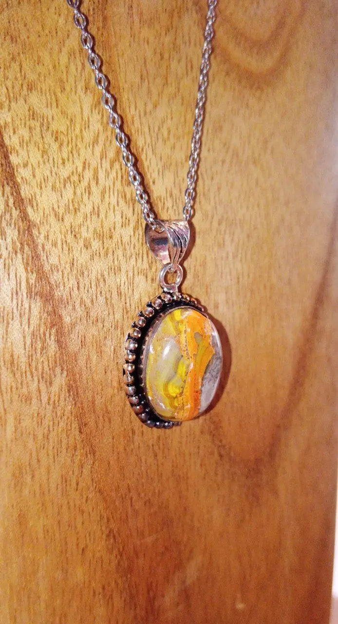 Il Diaspro Bombo è una pietra dalla presenza immediata, riconoscibile per le sue stratificazioni intense di giallo, arancio, nero e grigio, che sembrano muoversi come onde o pennellate di energia viva. Il suo aspetto non è mai uniforme: ogni esemplare racconta una storia diversa, fatta di contrasti e forza primordiale.