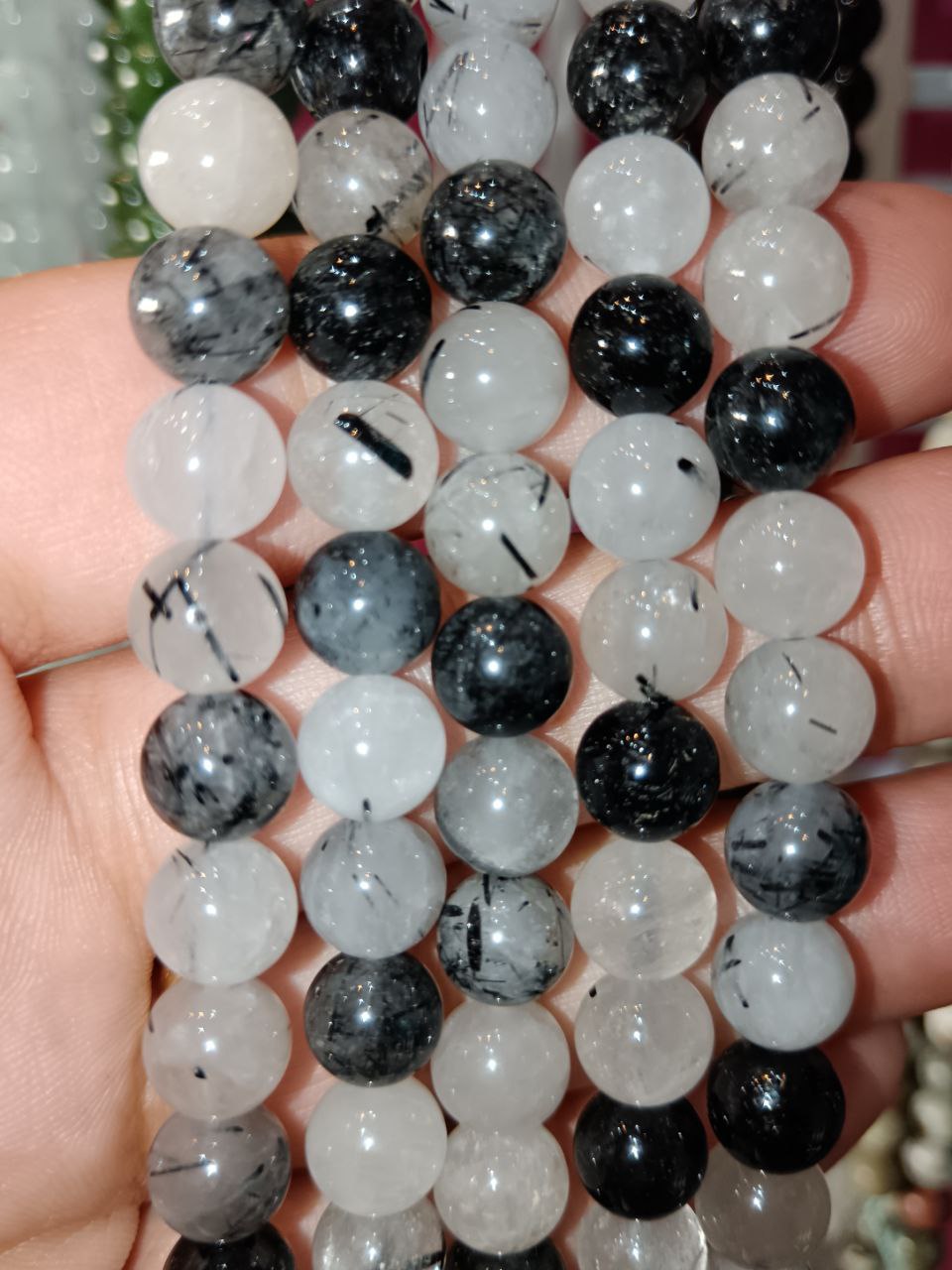 Filo di Cristallo 8mm Quarzo Tormalinato 40cm