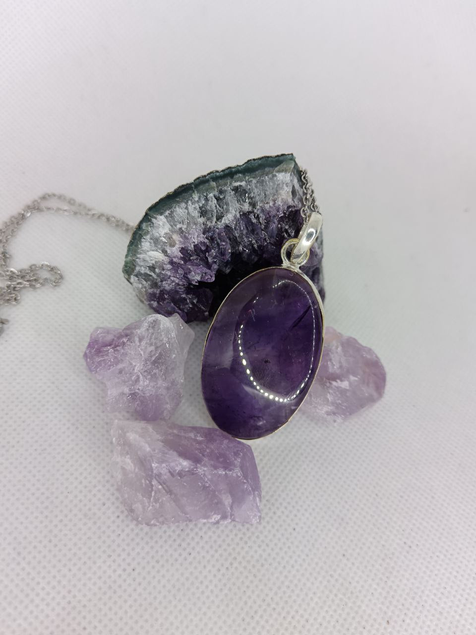 L’ametista, con i suoi toni viola profondi e spirituali, è da sempre considerata la pietra della saggezza interiore, capace di calmare la mente e aprire il cuore alla verità. Montata in argento 925, metallo nobile che amplifica le vibrazioni sottili, questa gemma diventa un ponte tra il visibile e l’invisibile.